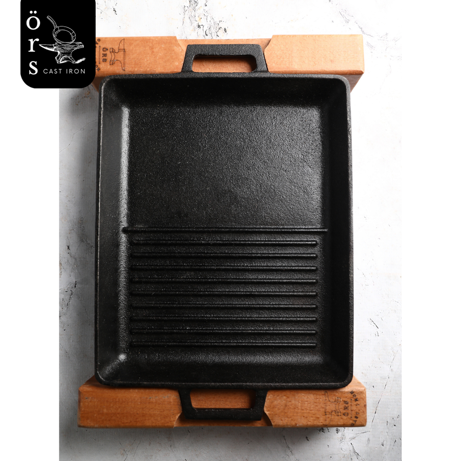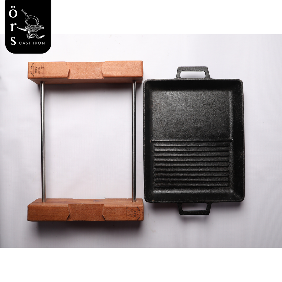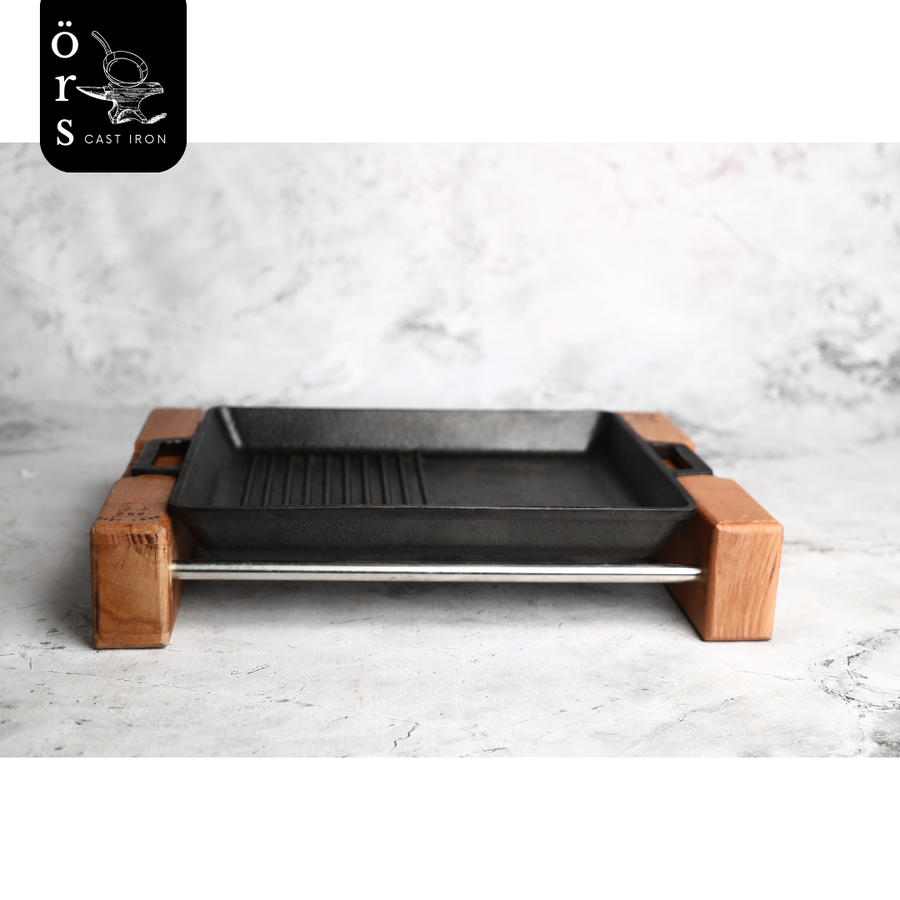 Örs Cast Iron Grill Pan 32 cm with Wooden Serving Stand